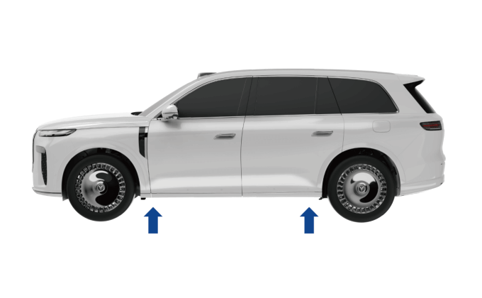 在进行底盘检修、轮胎更换等操作时,需将车辆进行举升,方便操作: