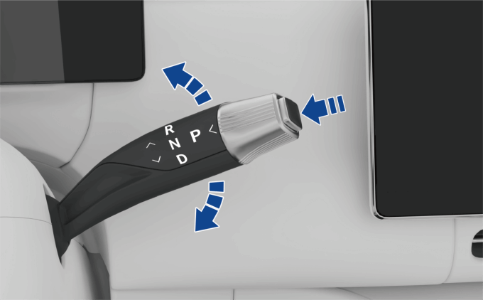 - 车辆在 R 挡时,将换挡杆向下推 1 挡并保持,直至仪表显示 N 挡。
