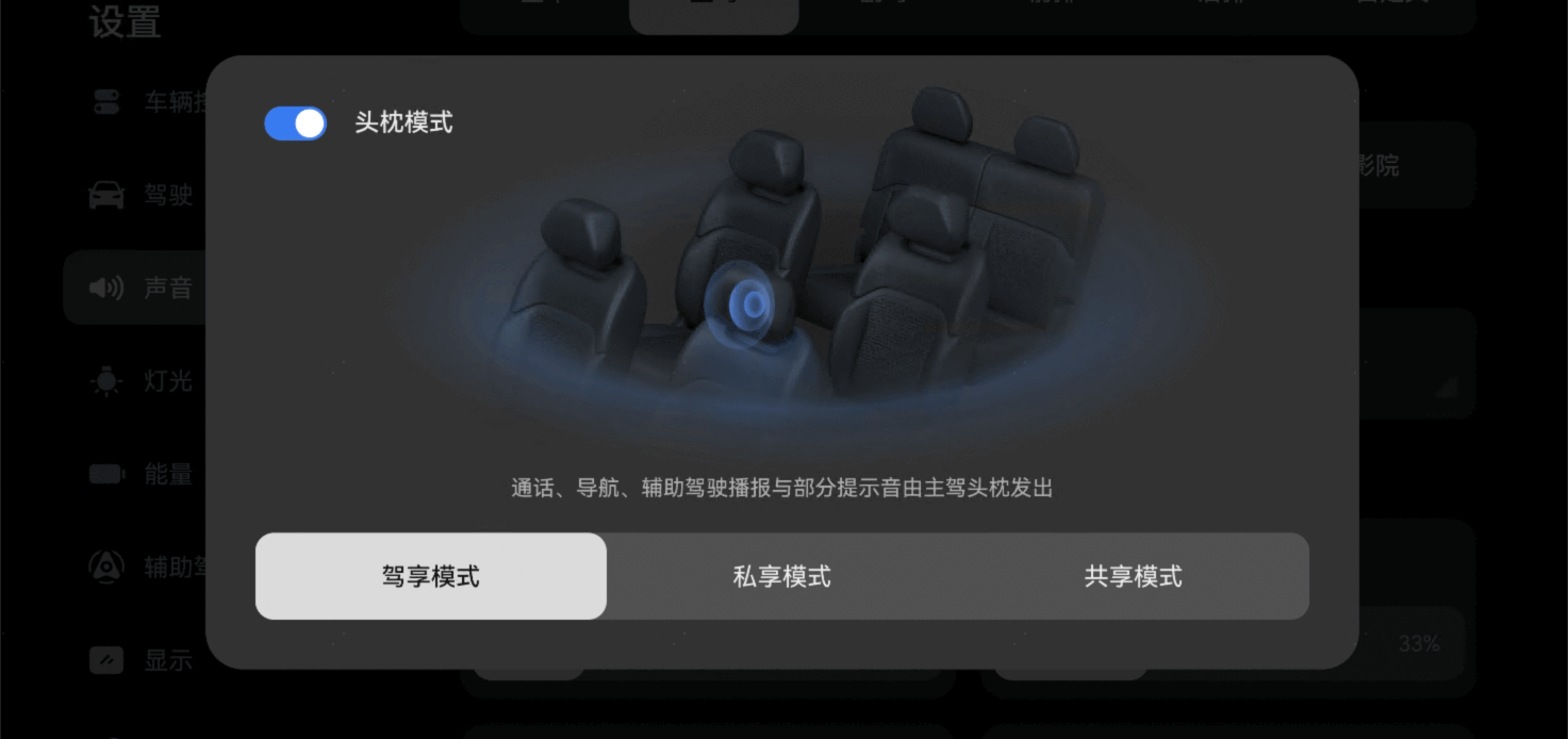 - “驾享模式”:仅为主驾播放通话、车载导航和铃声,乘客可正常通过车内扬声器收听音乐。
