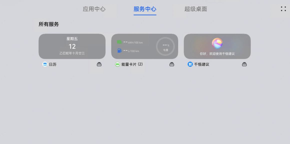 “服务卡片”是一种内容动态刷新的卡片,您无需打开应用,即可通过卡片获取应用内的重要信息,如千悟建议、车辆能量等,进入卡片可查看更多详情。
