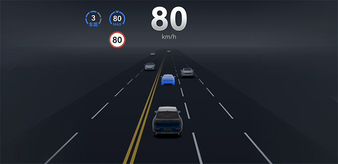 系统检测到车辆、行人、骑行人等障碍物,或遇到弯道、雪地或湿滑路况、雨天、路面积水等危险场景时,系统会控制车辆降低车速。在雨天等能见度较差场景,系统还会根据雨刮的挡位与道路类型限制目标车速,驾驶员可以手动调节目标车速。