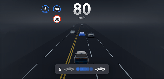 调节跟车时距时,仪表屏底部会显示目标跟车时距挡位,该信息会在显示数秒后消失。