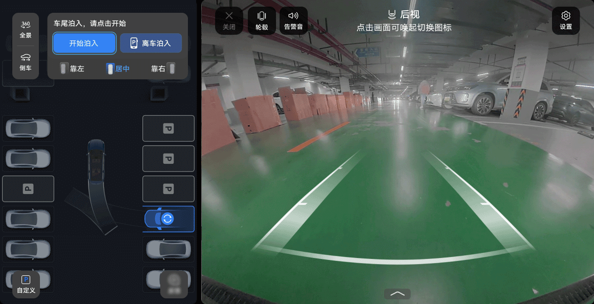 在没有车位线的场景下,驾驶员也可选择“自定义车位”功能完成车位选择。