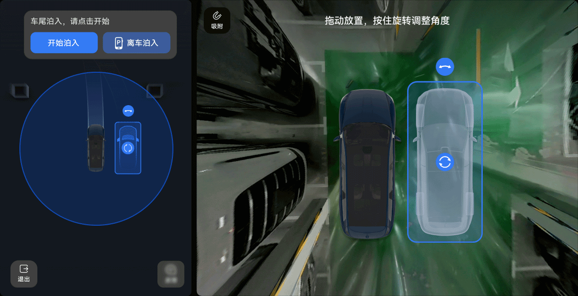 - 点触屏幕目标位置或拖拽车位框以调整位置,拖动车位框顶部的旋转图标以调整角度。