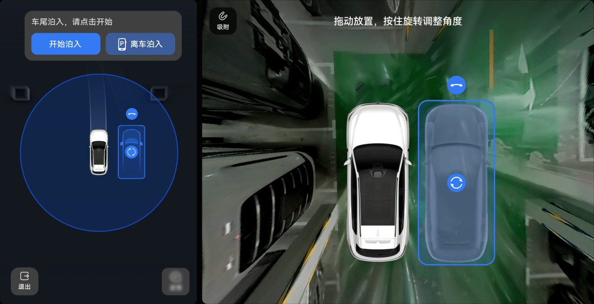 点触屏幕目标位置或拖拽车位框以调整位置,拖动车位框顶部的旋转图标以调整角度。
