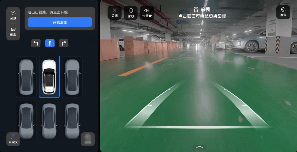 驾驶员选择泊出方向后,踩住制动踏板同时点触“开始泊出”,根据组合仪表提示松开制动踏板和方向盘。