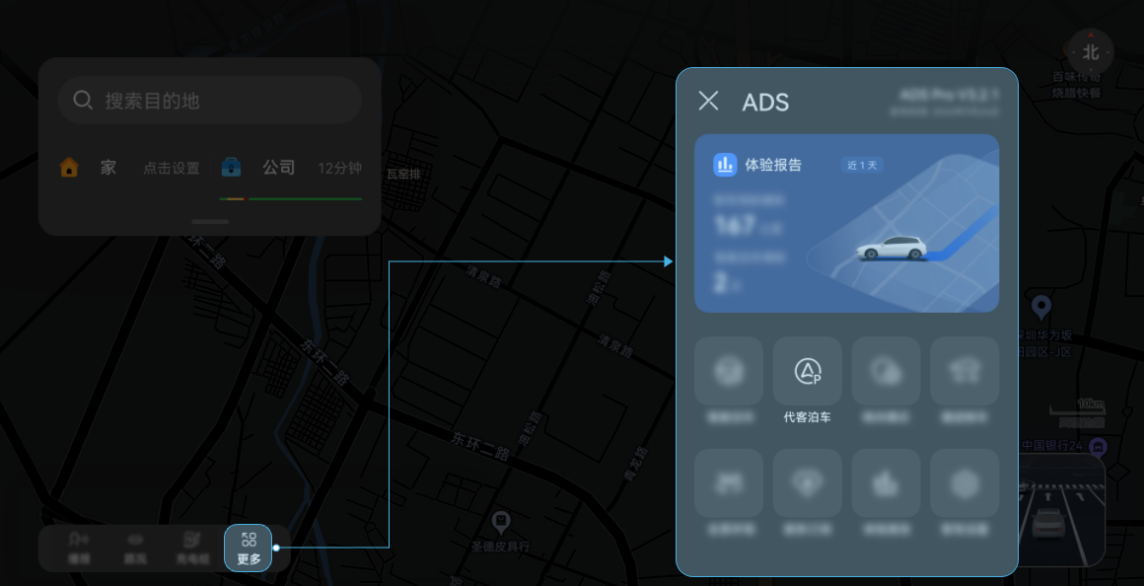 ,在弹出的 ADS 服务面板中点击“代客泊车”,根据界面提示点击“记忆路线”。