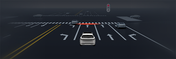 - 闯红灯提醒:当前车道的机动车交通信号灯为红灯,而自车未停车导致存在闯红灯风险时,组合仪表上自车前方的停止线红色高亮,并伴有提示音。