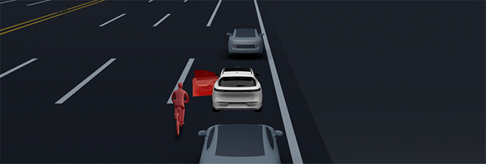 开门预警(Door Open Warning,简称为 DOW)系统通过雷达等传感器检测自车左右两侧后方的目标(车辆、骑行人)。当车辆在上电状态下静止或以约不高于 5 km/h 的速度缓慢行驶时,DOW 会在检测到自车开门有碰撞风险时,将相应侧外后视镜上的报警灯点亮,以提醒驾驶人员注意风险;如果此时驾乘人员打开相应车门,则目标侧外后视镜上的报警灯闪烁,车外危险报警灯闪烁,伴有提示音,提醒驾乘人员注意碰撞风险。