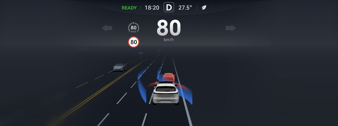 转向时,组合仪表上将风险目标红色高亮显示,并显示自车意图行驶的转向轨迹。